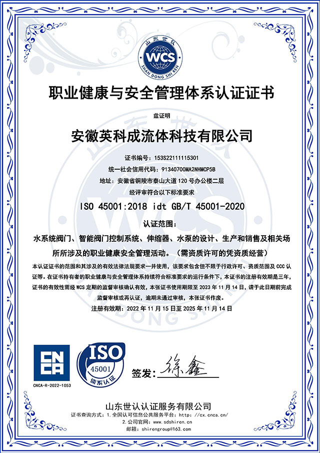 職業(yè)健康安全管理體系認(rèn)證證書(shū)